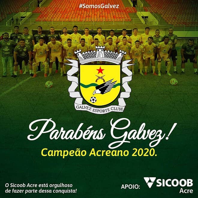 Patrocinador do Galvez Esporte Clube desde 2011, ano de fundação do time, a Cooperativa de Crédito e Investimentos do Acre (Sicoob Acre) celebra o título inédito da agremiação no Campeonato Acreano. O título veio no domingo, 13, com a vitória por 2 a 0 sobre o Rio Branco durante a última partida do estadual realizada na Arena Acreana, em jogo sem a presença do público devido ao novo coronavírus. Esta é a primeira vez que o time chega ao topo da competição.