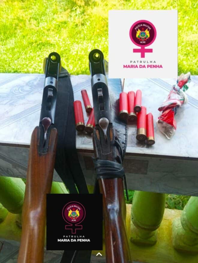 Policiais militares da Patrulha Maria da Penha da Polícia Militar do Acre (PMAC), apreenderam na tarde desta quinta-feira, 17, em Epitaciolândia, duas armas de fogo do tipo “espingarda”. Em ocorrência posterior, em cumprimento de decisão judicial relacionada ao crime de violência doméstica, a equipe capturou um homem de 36 anos com mandado de prisão em aberto.