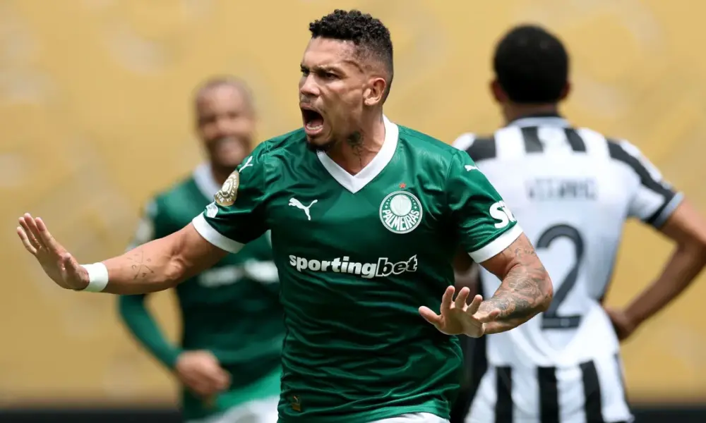 O Verdão começou com mais posse de bola e chegou perto do gol aos nove minutos, quando Piquerez escapou pelo lado esquerdo e cruzou para Vitor Roque quase abrir o placar.