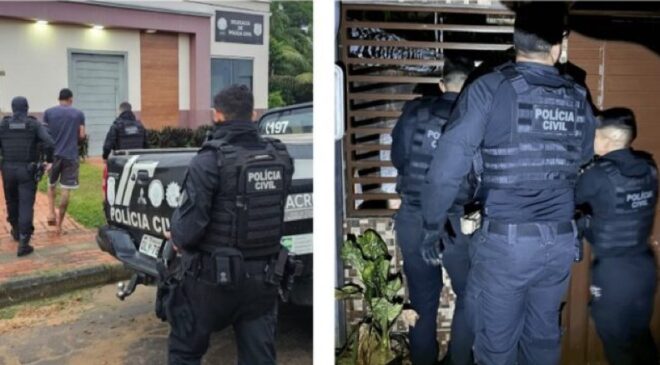 Em uma ação conjunta das Delegacias de Polícia Civil de Rodrigues Alves e Cruzeiro do Sul, a Polícia Civil do Acre (PCAC) realizou, nesta terça-feira, 20, o cumprimento de sete mandados de busca e apreensão expedidos pelo Poder Judiciário. Durante a operação, também foi cumprido um mandado de prisão preventiva contra um foragido da Justiça do estado de Rondônia, que estava escondido na cidade de Rodrigues Alves.