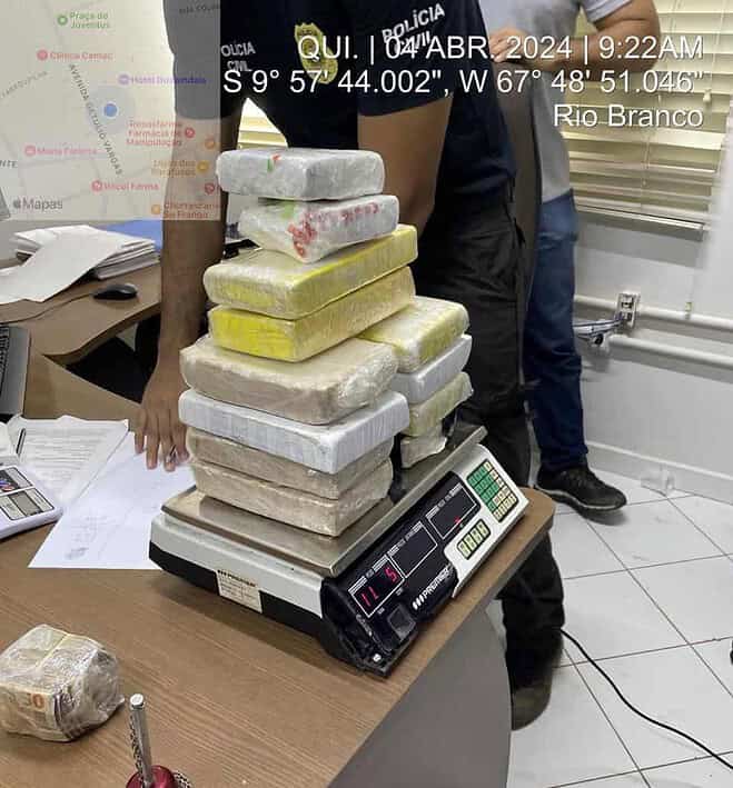 Nesta quinta-feira, 04, a Polícia Civil do Acre (PCAC), por meio da Delegacia de Repressão ao Narcotráfico (Denarc), com o apoio da Coordenadoria de Recursos Especiais (CORE), desferiu um duro golpe contra as organizações criminosas atuantes na capital do estado. A operação resultou na apreensão de mais de 11 quilos de cocaína, duas armas de fogo, um revólver calibre 38 e uma pistola 9 milímetros, rádios comunicadores e uma quantia significativa em dinheiro, totalizando R$77.920 mil.