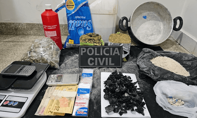 Durante diligências, investigativas da Polícia Civil avistaram três indivíduos em atitude suspeita, que ao perceberem a presença policial, tentaram fugir, mas foram contidos. Próximo ao local, em uma residência abandonada, foram encontrados 1,3 quilo de maconha, 400 gramas de cocaína e oxidado.