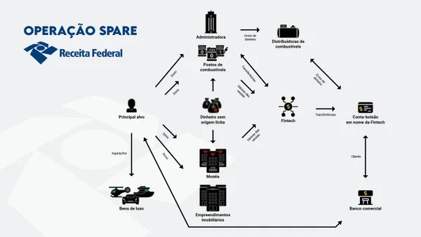 Além dos postos, os investigados são suspeitos de utilizar empreendimentos imobiliários, motéis e lojas de franquia como instrumentos para lavagem de dinheiro e ocultação de patrimônio. Esse movimento se dava em espécie e por maquininhas via fintechs, e posteriormente os recursos lavados eram reinvestidos em negócios, imóveis e outros ativos, por meio de Sociedades em Conta de Participação (SCP), de acordo com a Receita Federal.