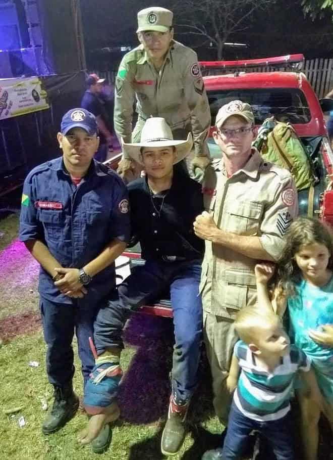 Douglas recebeu apoio e cuidados da equipe do Corpo de Bombeiros que estiveram no evento.
