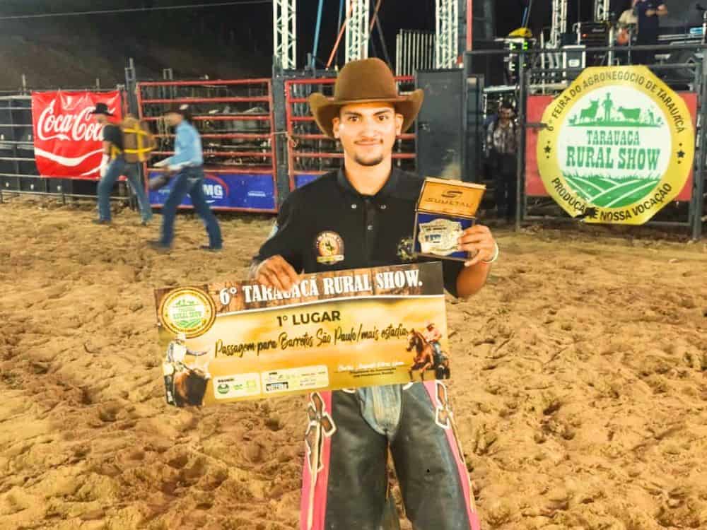 O jovem peão Raylan Souza, de apenas 19 anos, foi o grande campeão do Rodeio da Tarauacá Rural Show 2025. Natural do Bujari, ele somou 250,50 pontos e garantiu não apenas o prêmio em dinheiro, mas também o passaporte direto para disputar a arena mais famosa do país, em Barretos, no ano de 2026, com passagem e estadia incluídas.