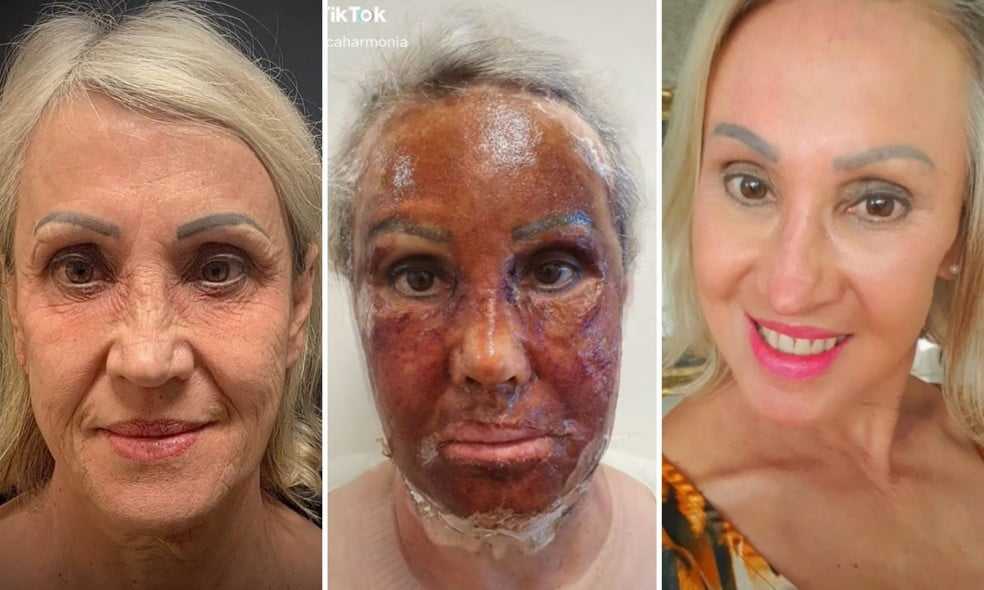 As imagens impressionam, já que o procedimento parece “queimar” a pele. Dias após a aplicação, a pele parece “se soltar” do rosto.