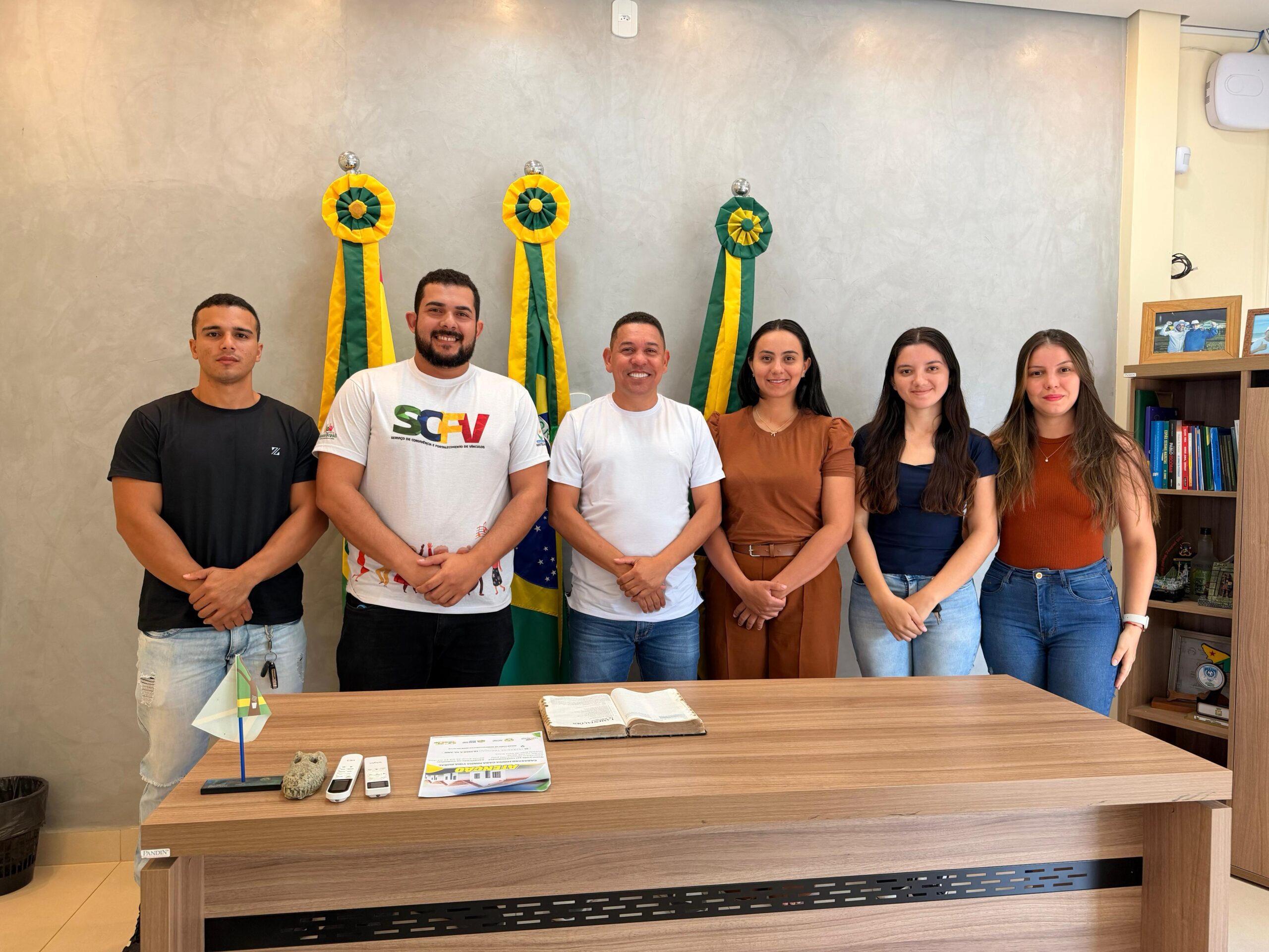 Nesta sexta-feira, o prefeito Jerry Correia recebeu, na sede da Prefeitura de Assis Brasil, representantes do handebol do município, incluindo atletas homens e mulheres, em um importante momento de diálogo e construção conjunta para o fortalecimento da modalidade.