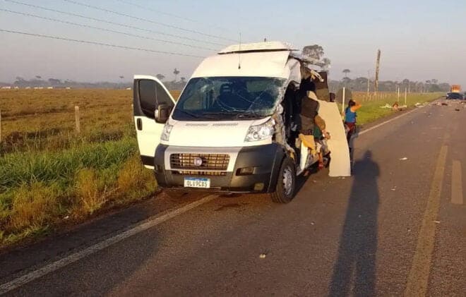 “Conclui o inquérito, ouvi os motoristas, vários passageiros e a perícia foi concluída. E a conclusão do inquérito foi que a van invadiu a faixa do caminhão e houve a colisão e as mortes”, disse o delegado Gustavo Neves.