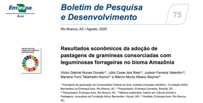 Um estudo realizado por pesquisadores da Embrapa/Acre demonstrou que a adoção de pastagens consorciadas – com gramíneas e leguminosas forrageiras – no bioma Amazônia gera resultados econômicos significativamente superiores aos sistemas convencionais. A pesquisa “Resultados econômicos da adoção de pastagens de gramíneas consorciadas com leguminosas forrageiras no bioma Amazônia”, publicada em agosto, revela que a produtividade do Sistema Guaxupé, testado em Rio Branco, foi 57% maior que a observada na fazenda de pecuária tradicional.