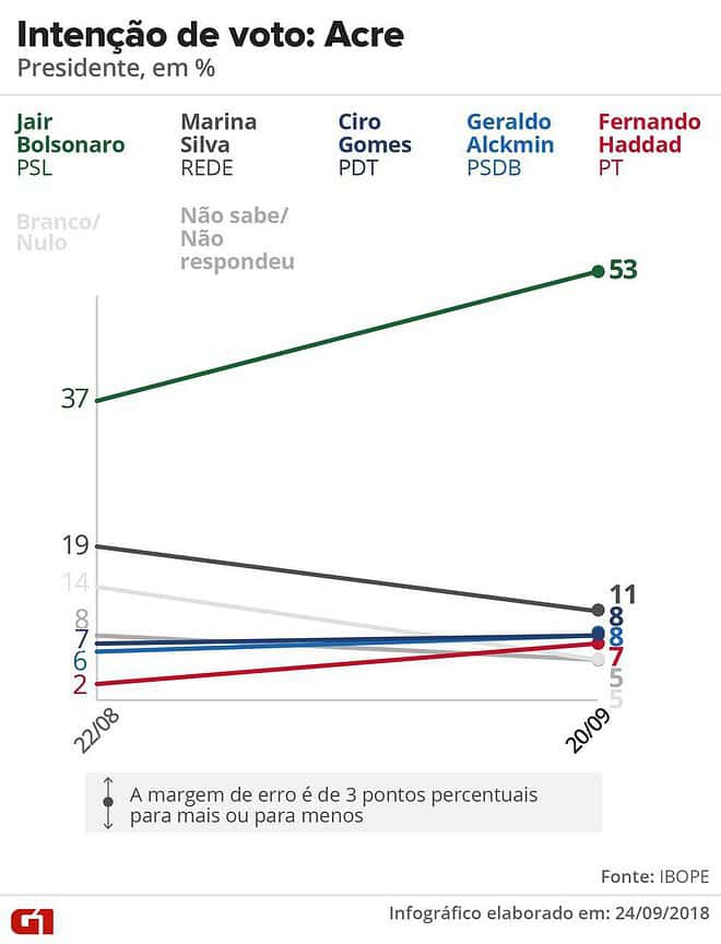 Pesquisa Ibope – evolução da intenção voto para presidente no Acre. — Foto: Arte/G1