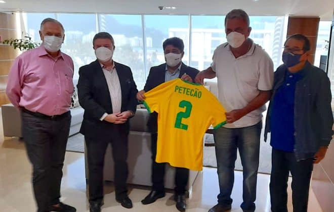 Na sede da instituição, no Rio de Janeiro, Petecão recebeu dos dirigentes da maior entidade do futebol brasileiro uma camisa oficial da seleção brasileira personalizada com seu nome. Também estava presente o técnico Tite.