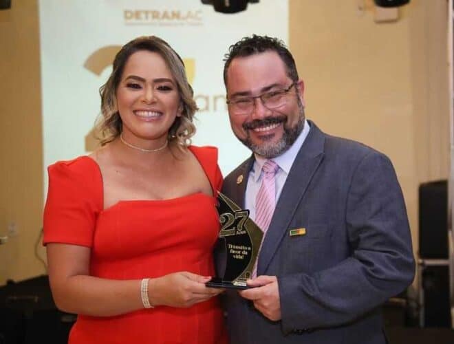 Um dos nomes mais importantes da engenharia civil acreana, Petronio Antunes, agradeceu a presidente do Detran, Taynara Martins Barbosa, pelo reconhecimento e ressaltou a importância da parceria do órgão nos trabalhos executados no Acre.