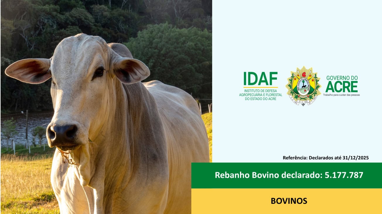 O governo do Acre, por meio do Instituto de Defesa Agropecuária e Florestal do Acre (Idaf), divulgou os resultados consolidados da 9ª Campanha de Declaração de Rebanhos de 2025, encerrada em 31 de dezembro, que evidenciam um cenário positivo e o avanço e o fortalecimento do setor agropecuário no estado. Os números refletem o compromisso dos produtores rurais com a regularidade sanitária e o controle zootécnico das propriedades.