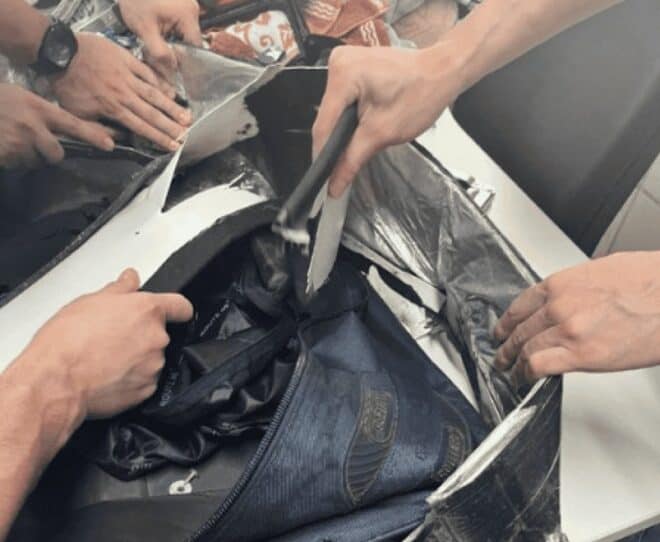 Durante a abordagem, foram encontrados envelopes contendo a substância cocaína, escondidos nas paredes da mala de viagem. Diante dos fatos, o indivíduo foi preso em flagrante por tráfico de drogas.