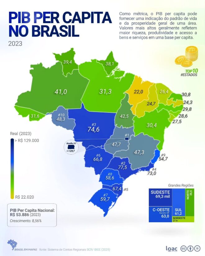 - Distrito Federal: R$ 129,7 mil (maior do país)