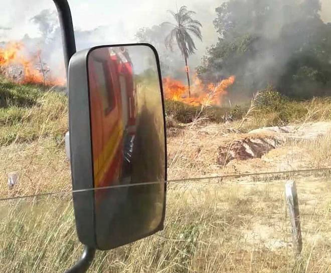 As chamas passaram de quatro metros com ajuda dos ventos.