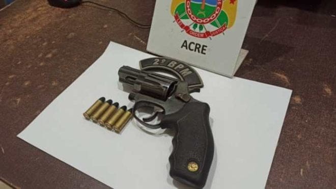 Um jovem identificado como Jonh, 25 anos, foi preso acusado de porte ilegal de arma de fogo, na noite desta segunda-feira (5), na Rodovia AC-40, no bairro Vila Acre, na região do Segundo Distrito de Rio Branco.