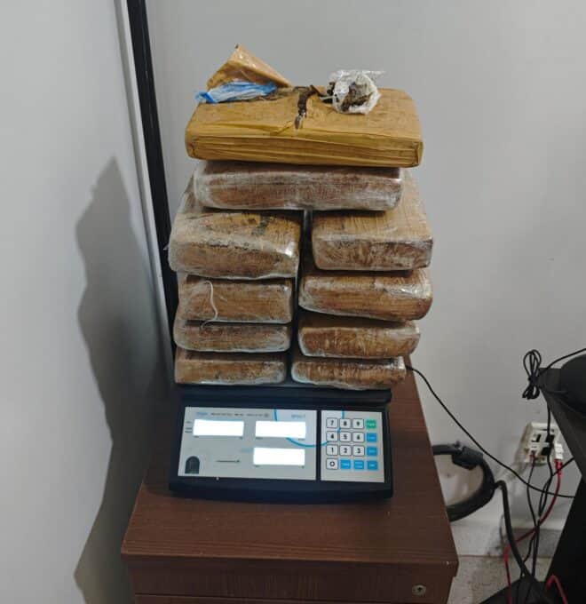 Com o apoio dos cães farejadores, os policiais localizaram duas mochilas escondidas no mato e nelas havia 10,395 kg de maconha. O homem e o material ilícito foram encaminhados à Delegacia, para prosseguimento das medidas cabíveis aos fato.