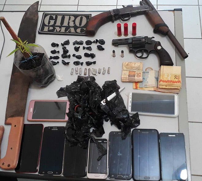 Foi quando localizaram primeiramente, Willian Afonso de Oliveira (31), que estava uma das armas usadas, um revolver calibre 38 e parte do dinheiro. A partir daí, foram localizados; Ramon Lira dos Santos (19), no Bairro Alberto Castro e Maikeline Braga (20). Logo em seguida, quatro menores foram identificados e apreendidos com parte do dinheiro, drogas e munição da escopeta usada no crime.