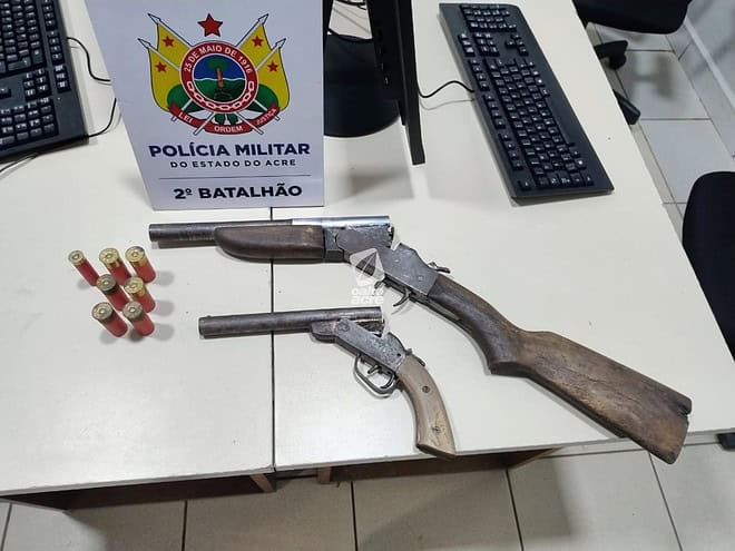 Além disso, os policiais localizaram outra arma de fogo calibre 28, também engatilhada com uma munição intacta, que foi apreendida com Jansen Marcos. No forro da casa, os militares ainda encontraram uma bolsa pendurada com cinco munições calibre 12 intactas.