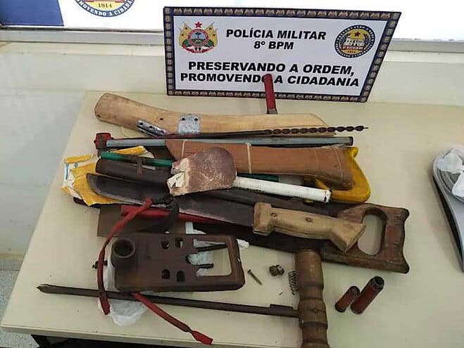 Os militares se deslocaram ao local e após buscas encontraram as ferramentas, além de, uma escopeta em estado final de acabamento e munições intactas.