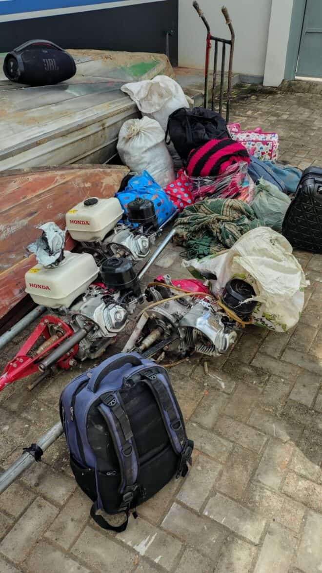 No acampamento foram encontrados duas mochilas, cinco sacos de fibras com roupas, três bolsas, uma sacola, uma mala preta e um carrinho de transporte de mercadorias. A ocorrência foi finalizada já no período da noite, quando o grupo e todo o material apreendido foram encaminhados à Delegacia de Polícia Civil, que dará prosseguimento às investigações.