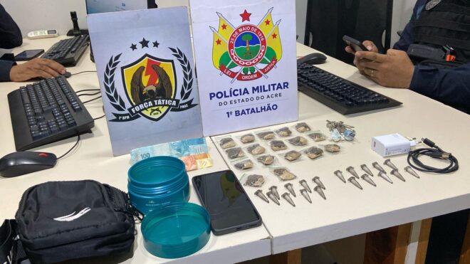 A Polícia Militar do Acre (PMAC) prende dupla por tráfico de drogas no bairro João Eduardo I, na noite desta quarta-feira, 26.