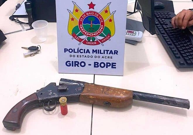 Na noite desta terça-feira, 23 de maio, a Polícia Militar do Acre (PMAC), por meio do Grupamento Intervenção Rápida Ostensiva (Giro), apreendeu uma arma de fogo e recuperou uma motocicleta no bairro Santa Inês.