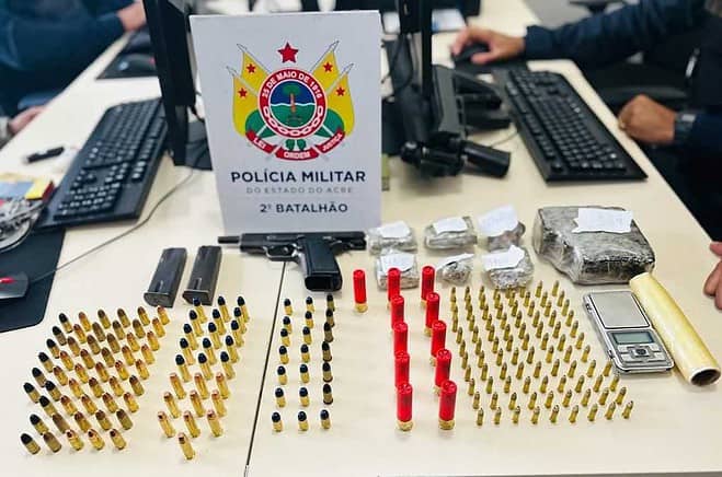 Um homem foi preso pela Polícia Militar do Acre (PMAC) na tarde desta terça-feira, 16, por porte ilegal de arma de fogo e tráfico de drogas. A ocorrência aconteceu na travessa Batista, no bairro Taquari.