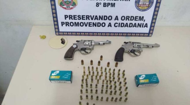 O resultado da operação foi a apreensão de dois revólver cal. 22, munições cal. 22 intactos e 05 munições cal. 32 intactos.
