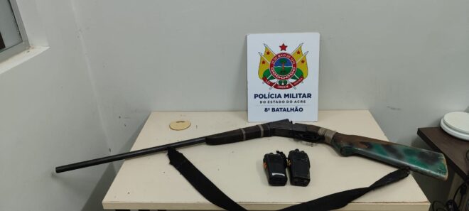 Dois homens, de 52 e 27 anos (pai e filho), foram presos na madrugada desta sexta-feira, 24, por uma guarnição do 8º Batalhão da Polícia Militar do Acre (8º BPM/PMAC),na zona rural do município de Sena Madureira, por tentativa de homicídio, posse ilegal de arma de fogo, entre outros crimes. Uma espingarda calibre .28 e dois rádios comunicadores foram apreendidos durante a ação.