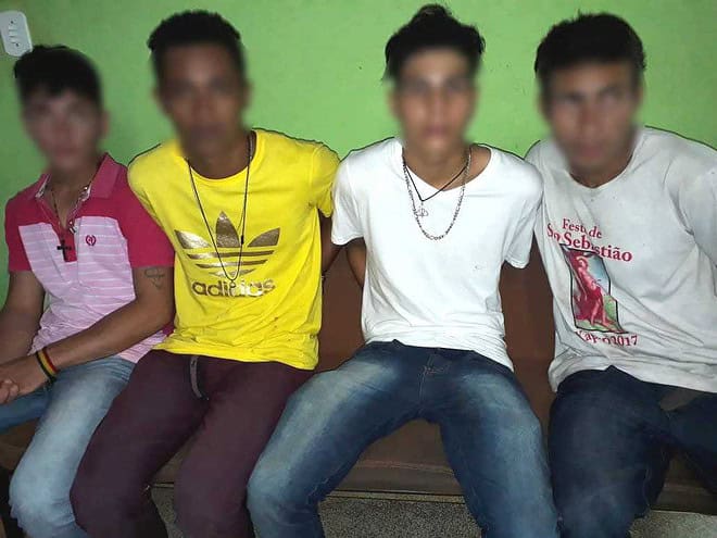 Ao chegarem no posto, renderam o frentista e levaram pouco mais de R$ 100 reais, que foi divido entre todos e se deslocaram para a Praça onde acontecia o carnaval. Apesar de tentarem escapar do flagrante, todos saíram com uma camisa extra, que trocaram após praticarem o crime, além de jogar as armas branca (facas), no rio.