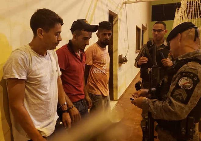Momento da abordagem ao trio que estavam dentro do ginásio da cidade de Xapuri.