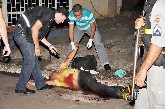 O policial foi atingido por golpes de facão e morreu no local do assalto/Foto: Selmo Melo/Agência ContilNet