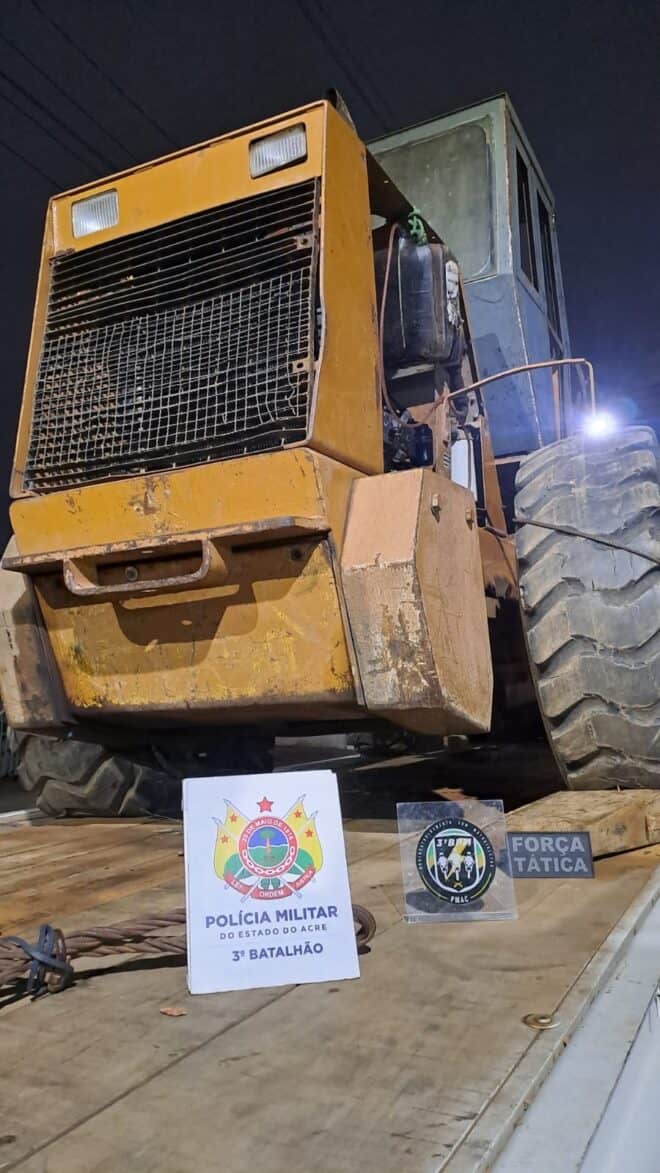 Segundo informações repassadas a uma equipe policial do 3º BPM, uma escavadeira estaria sendo furtada em um caminhão prancha. Os militares solicitaram apoio às demais guarnições de serviço, que imediatamente se dirigiram ao local da ocorrência. Ao chegarem, os policiais interceptaram o caminhão prancha e uma camionete Amarok.