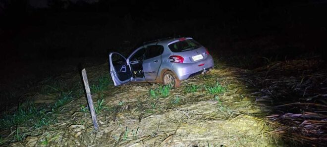 Populares avistaram quando o motorista foi lançado para fora do veículo, os policiais faziam patrulhamento quando foram informados do fato, de imediato seguiram o carro, nas proximidades do Irineu Serra, em um ramal, os suspeitos abandonaram o automóvel e fugiram para uma área de mata.