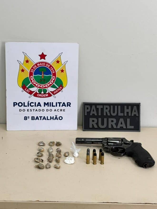O 8º Batalhão da Polícia Militar do Acre realizou, na manhã desta quinta-feira, 20, uma ação de patrulhamento rural que resultou na apreensão de drogas, munições e um revólver calibre .38 em uma residência localizada no Ramal do 15, zona rural de Sena Madureira. Um homem foi preso e outro conduzido para averiguação.