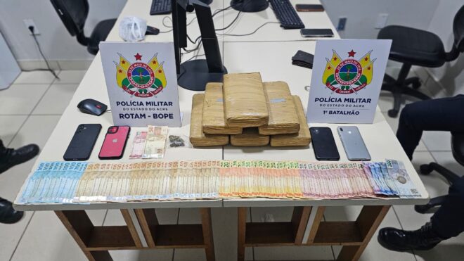 A Polícia Militar do Acre (PMAC) prendeu três indivíduos, com idades de 25, 25 e 35 anos, e apreendeu mais de seis quilos de maconha durante uma ação realizada na noite desta quarta-feira (19), no bairro João Paulo II, em Rio Branco. A operação contou com equipes do 1º Batalhão e apoio da ROTAM, após a corporação receber denúncia anônima detalhada informando que um grupo estaria realizando o abastecimento de drogas em pontos de venda da região da Baixada da Sobral.
