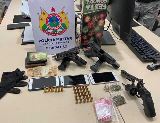 Militares do 1º Batalhão da Polícia Militar do Acre (PMAC), juntamente com uma equipe da Companhia Giro do Batalhão de Operações Especiais (Bope), prenderam cinco homens e apreenderam um menor na noite desta sexta-feira, 7, durante um confronto de facções por território, na Baixada da Sobral.