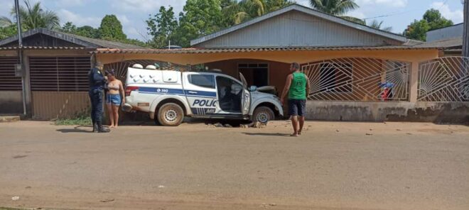 Policiais militares perderam o controle após baterem em um buraco durante uma perseguição na tarde desta quarta-feira (2), na rua Bionor Benício, no bairro Cageacre, no município de Brasiléia, no interior do Acre. Ninguém ficou ferido durante a ação.