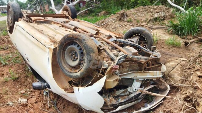 Motorista perde controle de veículo após pneu traseiro estourar e acaba capotando no interior do Acre