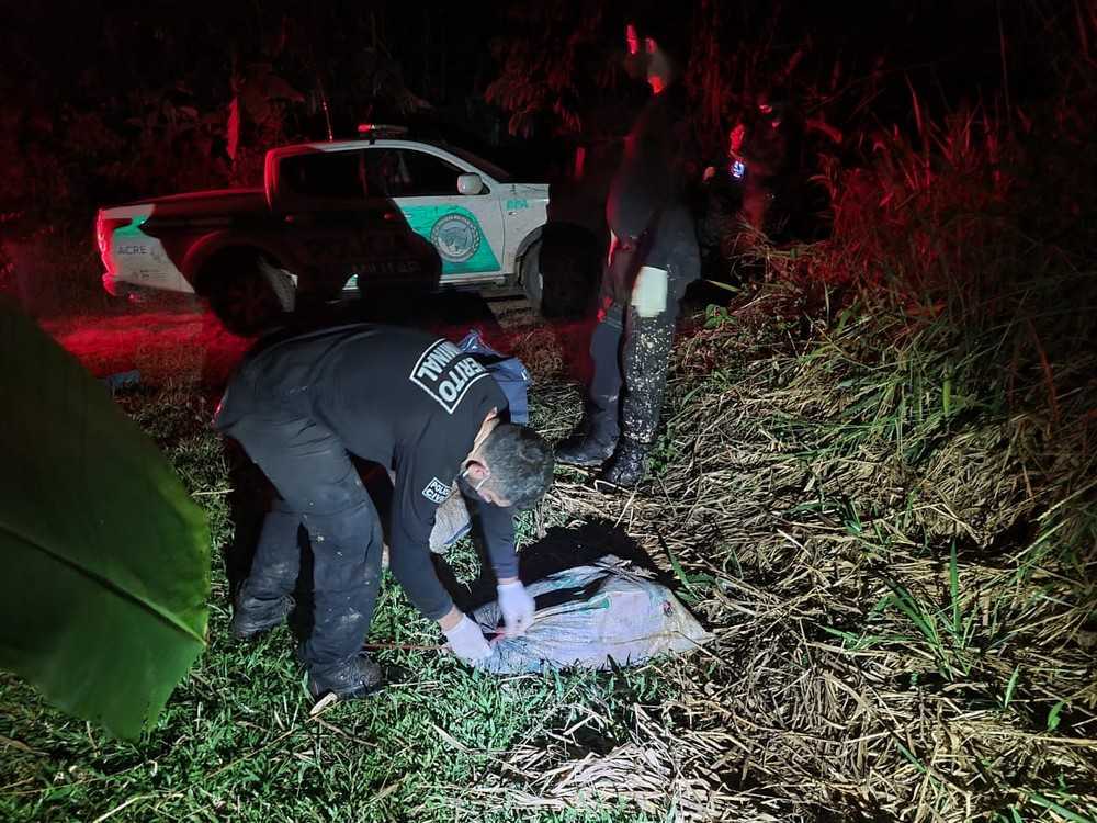 O corpo da vítima foi achado dentro de sacos plásticos próximo a um igarapé nessa quinta-feira (13), na zona rural do município do Bujari, no interior do Acre.