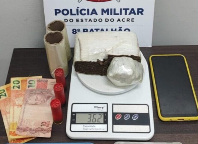 A Polícia Militar, por meio do 8º Batalhão (8º BPM), apreendeu 362 gramas de maconha, três munições calibre 16, dinheiro e materiais usados no tráfico de drogas durante uma ação na noite de terça-feira no bairro Eugênio Augusto Areal, em Sena Madureira. Dois suspeitos foram presos no local.