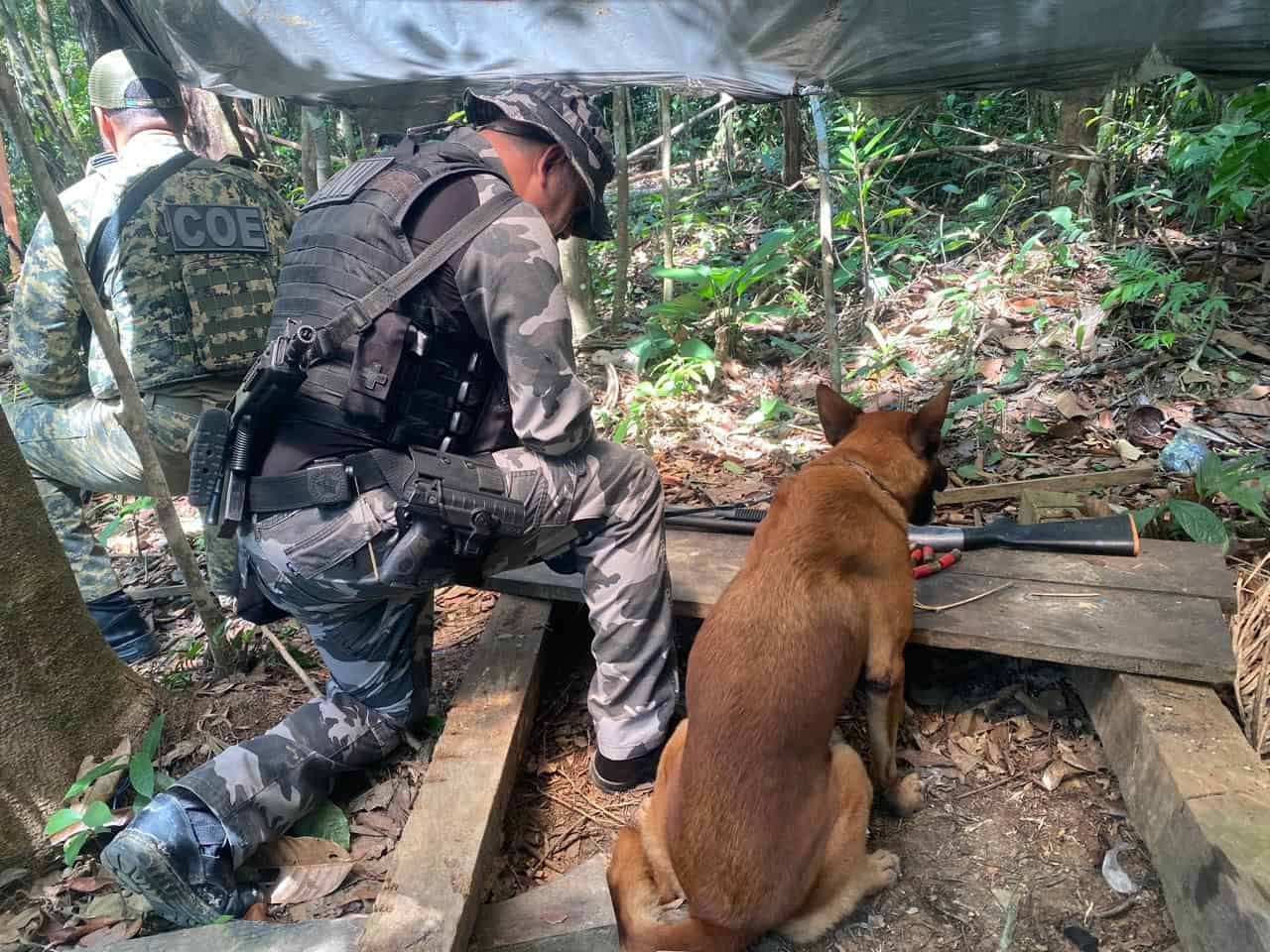 De acordo com a PM, as equipes do Grupamento de Operações Especiais (GOE) e do Grupamento de Operações com Cães (GOC) localizaram um abrigo improvisado em uma área de mata. Um homem que estava no local conseguiu fugir ao perceber a aproximação dos policiais.