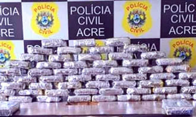 Uma operação conjunta ente as polícias Civil, Militar e Federal apreendeu nesta segunda-feira, 11, cerca de 67,260 quilos de entorpecente, sendo 4 quilos cloridrato de cocaína e 63,26 quilos de oxidado de cocaína. Dois homens foram presos na BR-364, próximo ao Rio Liberdade.