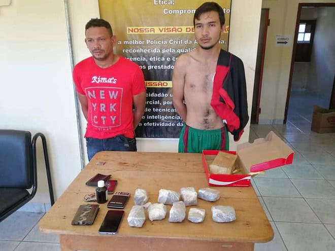 O produto estava sendo transportado em duas caixas, uma de sapato e outro de remédio, e foi recebido pela menor, e por Ronivon, assim que o avião pousou no aeroporto de Jordão.