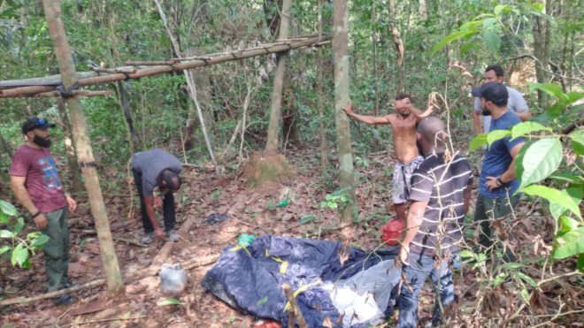 Os acusados de cometer os crimes estavam escondidos em acampamentos improvisados dentro da floresta localizada na zona rural do município.