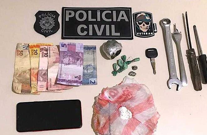 Com o conduzido foram apreendidos dinheiro, cocaína maconha. Ademais, foram encontradas ferramentas e uma chave de ignição adaptada para ligar as motocicletas furtadas.
