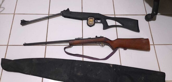 Nesta segunda-feira (13), agentes da Delegacia de Polícia Civil de Xapuri, coordenados pelo titular delegado Gustavo Neves, por meio da equipe de investigação chefiada pelo Inspetor Investigador Eurico Feitosa, prendeu em flagrante R.L. da C., de 39 anos de idade, após ter sido flagrado portando ilegalmente munições .22 e ter em sua casa dois rifles do mesmo calibre.