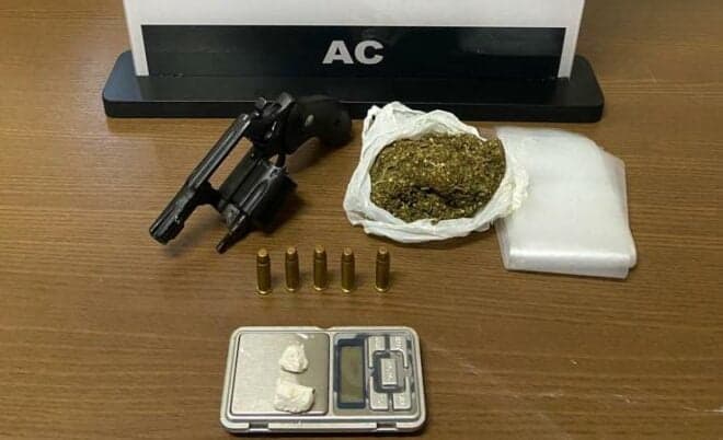 Durante o cumprimento dos mandados as equipes de policias prenderam quatro pessoas e apreenderam duas armas de fogo, dois revolveres calibre 38, além de 20 cartuchos intactos e uma quantidade de drogas com material para embalo do entorpecente e balança de precisão.